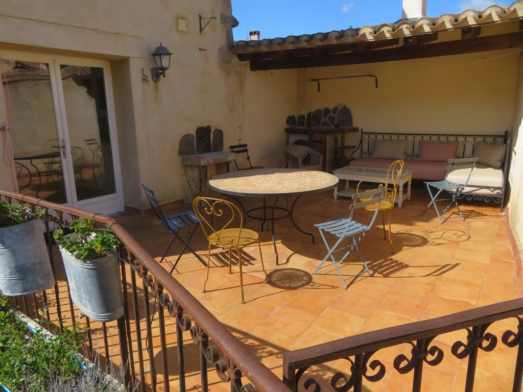 Accessible depuis le jardin partagé, il dispose dans les deux cas d’un escalier extérieur privatif, conduisant à une vaste terrasse panoramique, faisant découvrir les crêtes des collines environnantes par-dessus les toits de tuiles du village médiéval.